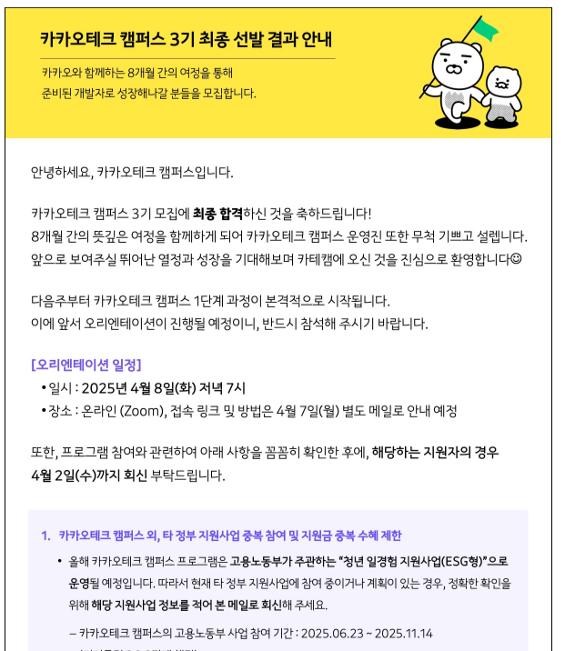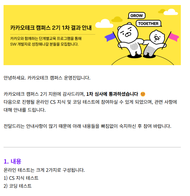 3월 22일에 코딩테스트를 친 뒤 4월 1일에 최종 발표가 났었는데, 두근두근 거려서 기다리기 너무 힘들었었다.